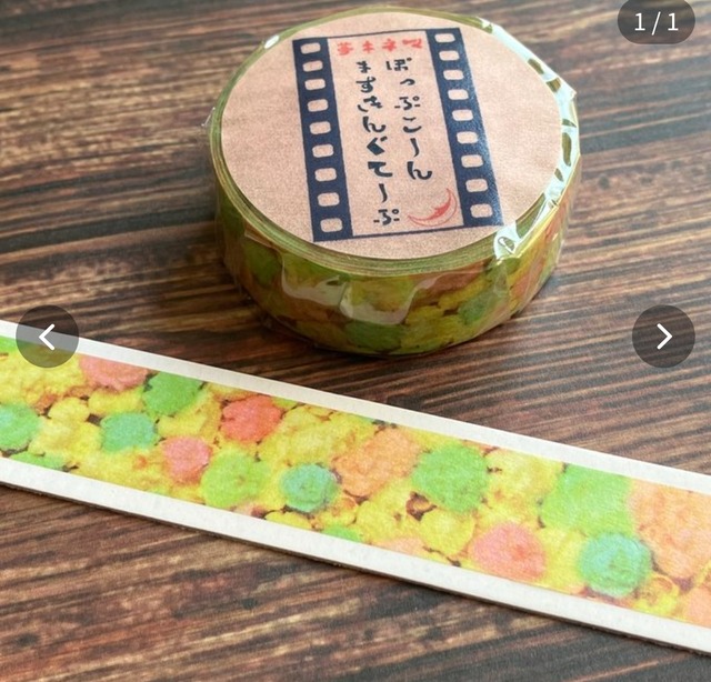 【夢キネマ】より ポップコーンのマスキングテープが出来上がりました 15mm✕10メートル 映画のお供はやっぱりポップコーン ということで、幅ぎっしりポップコーンのマステが完成したようです カラフルな夢色のポップコーンです ちなみに 夢キネマで食べることができる ポップコーンは、 色によって見ることが出来る夢が違うそうです 手帳やラッピングのデコレーションにご使用くださ