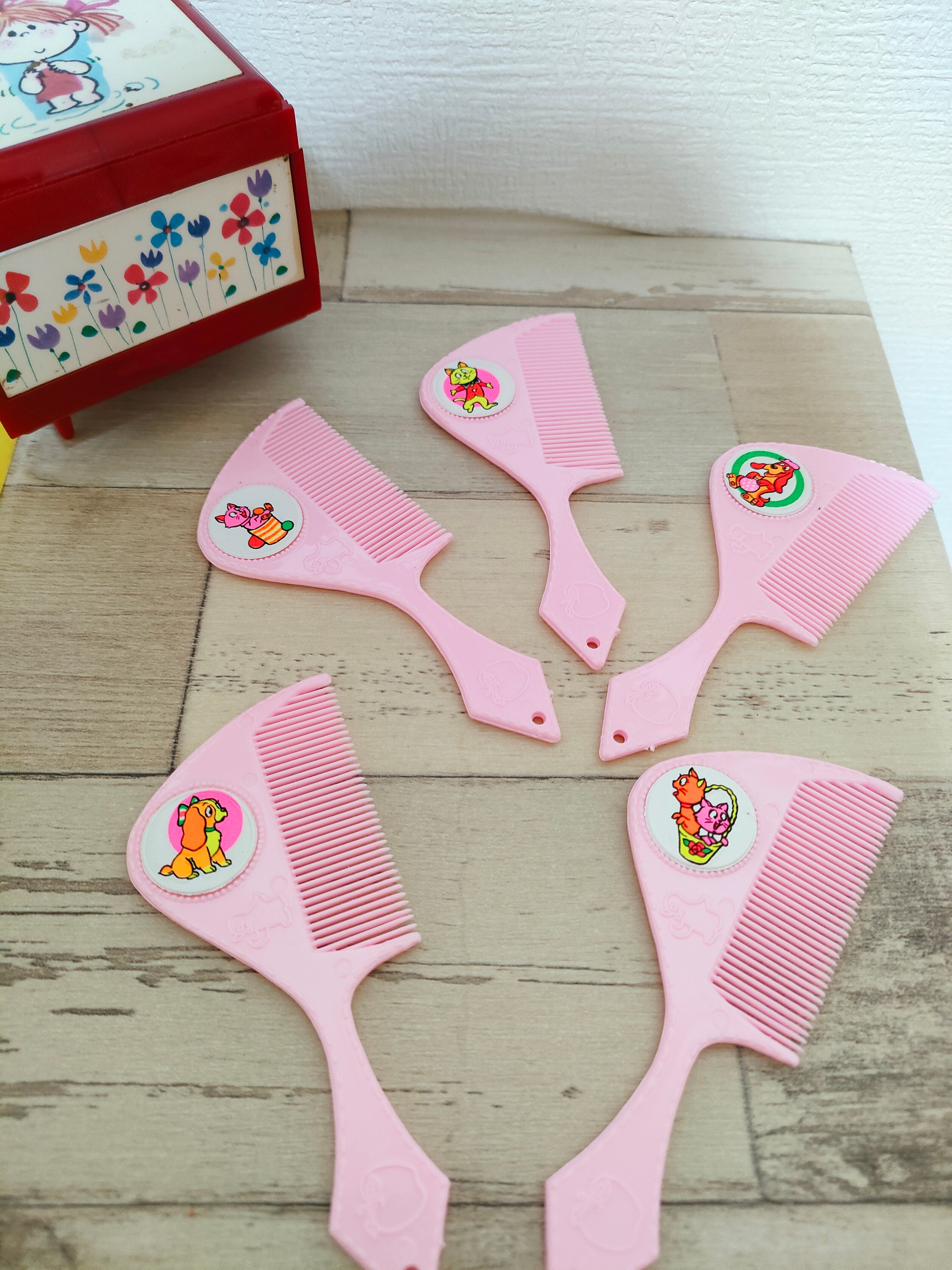 愛らしい犬やりんごの模様があるレトロなおもちゃくしです。子供から大人まで、幅広い年齢層にお楽しみいただけるアイテムです。