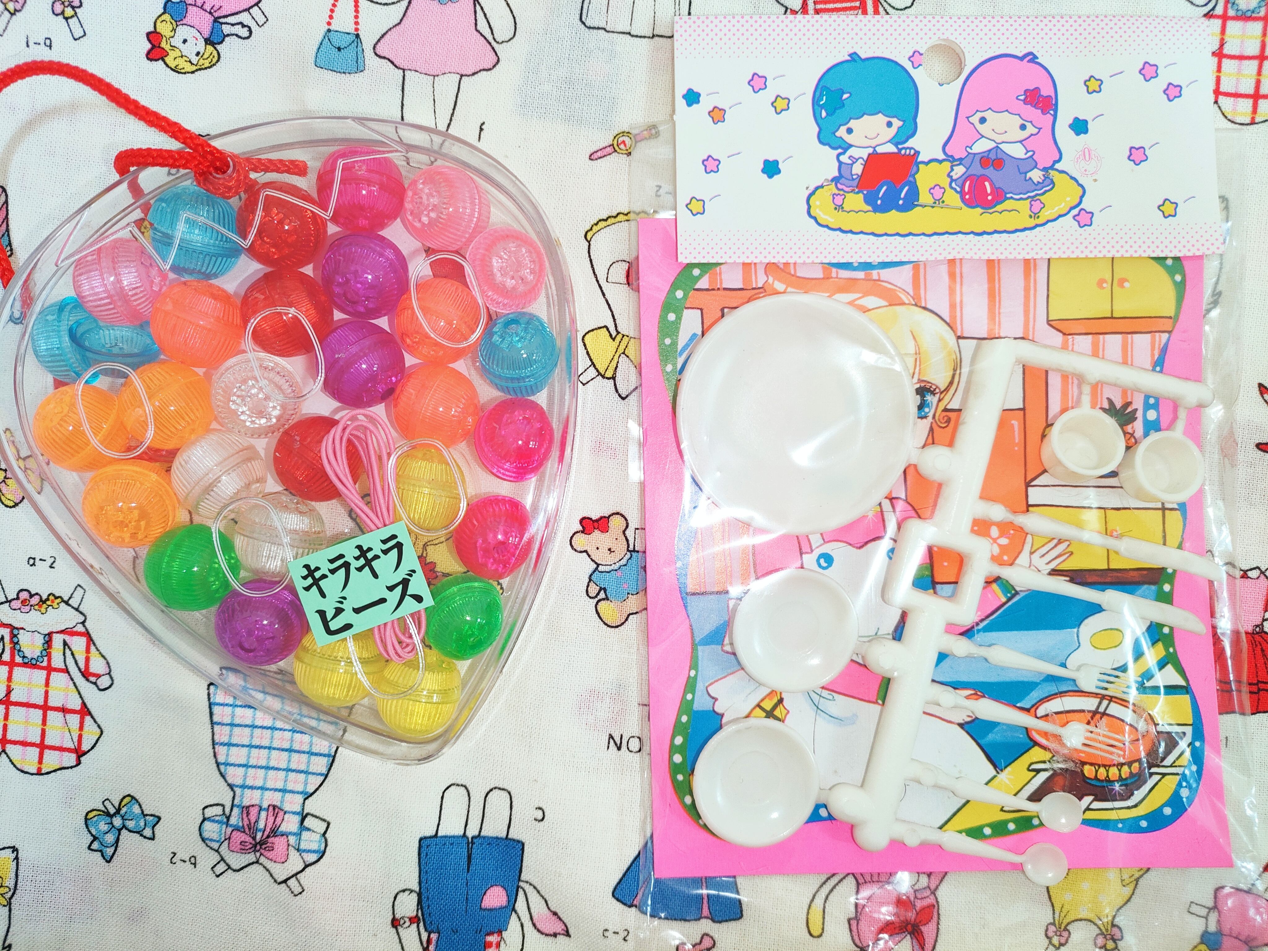 飴玉みたいなキラキラレトロビーズとミニままごとセット