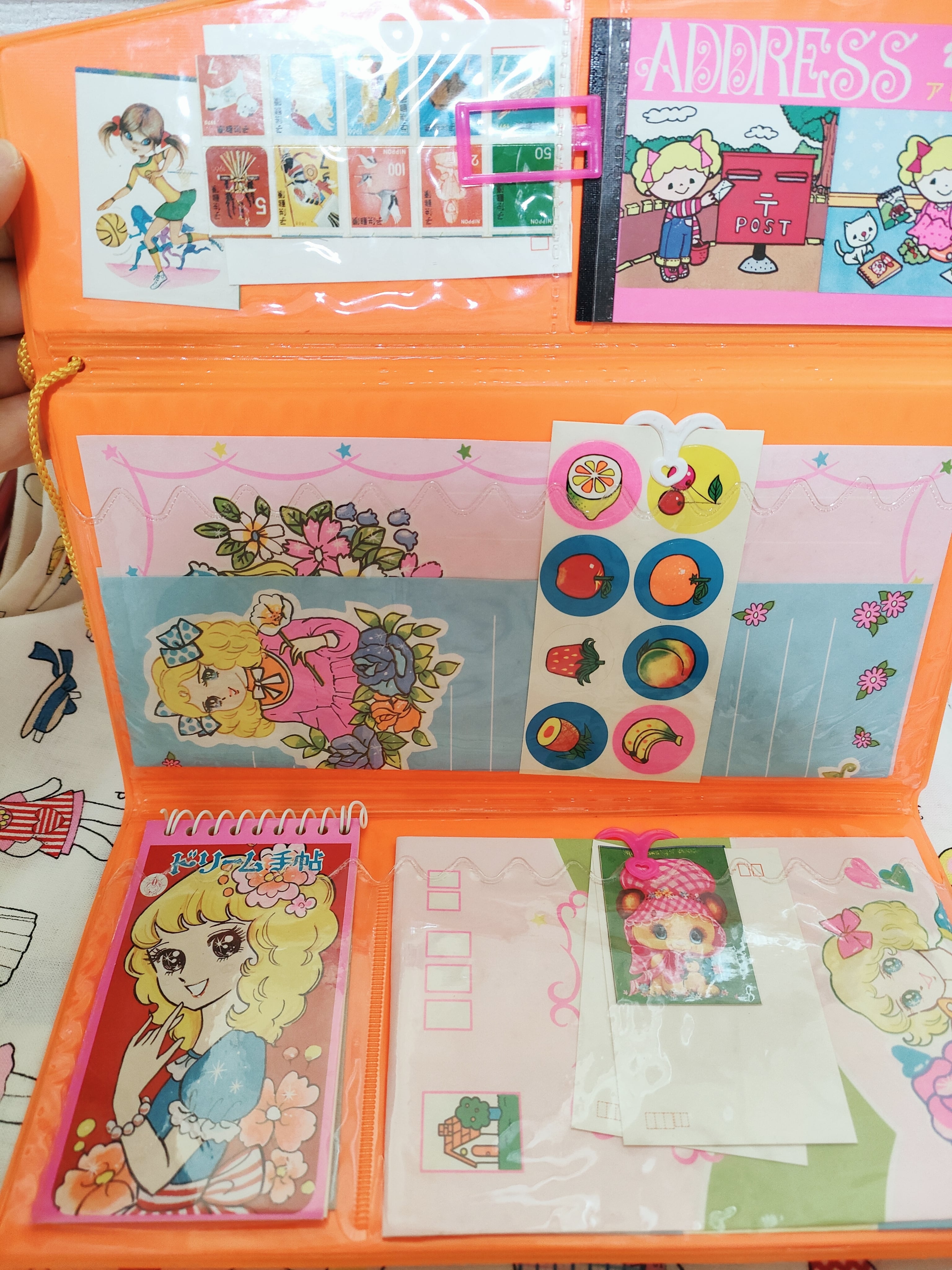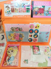 懐かしい絵柄の便せんや、封筒、アドレス帳や