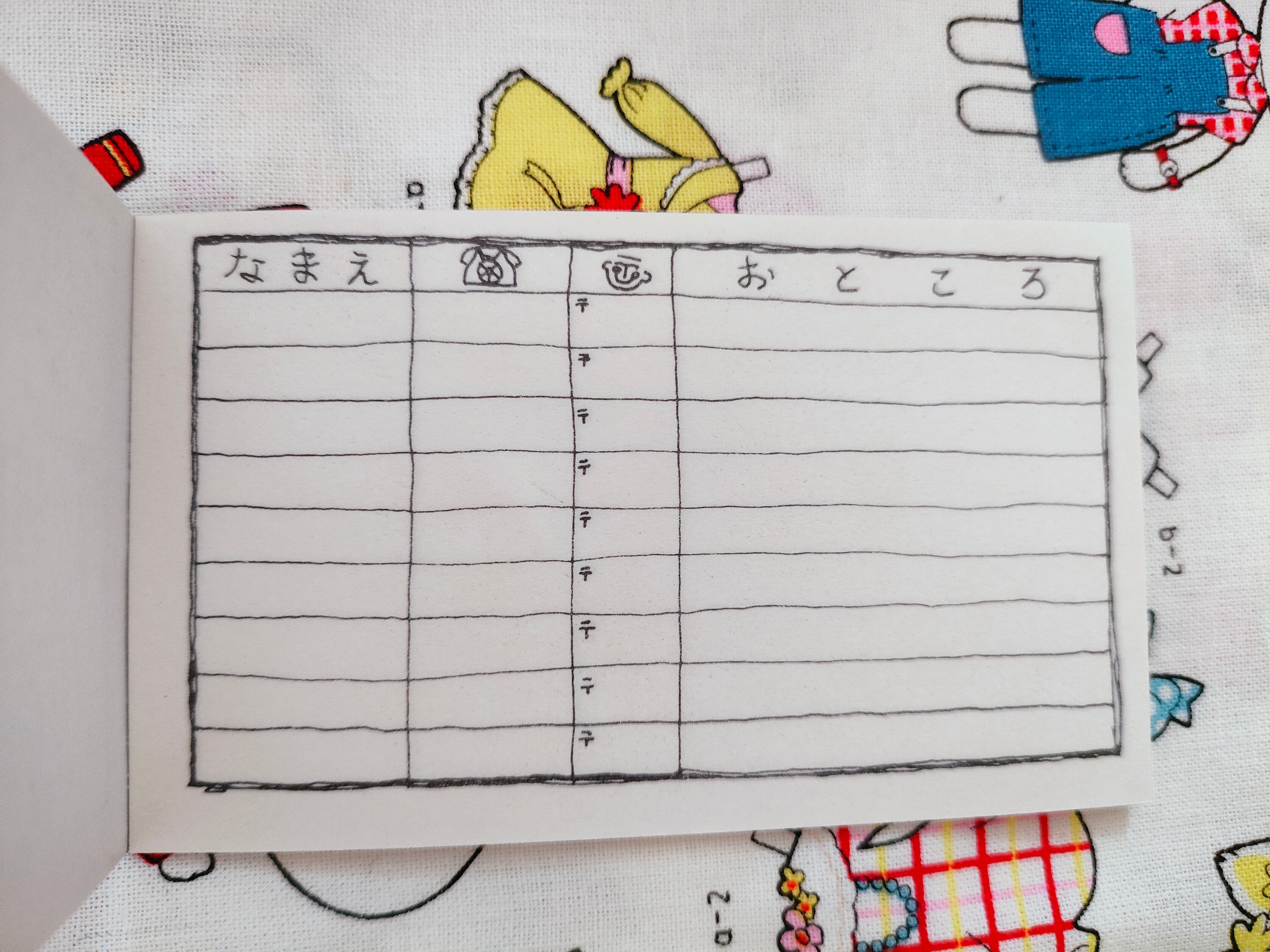 現在7枚目画像のメモ紙のがらと アドレス帳は8枚目画像の赤になっています。
